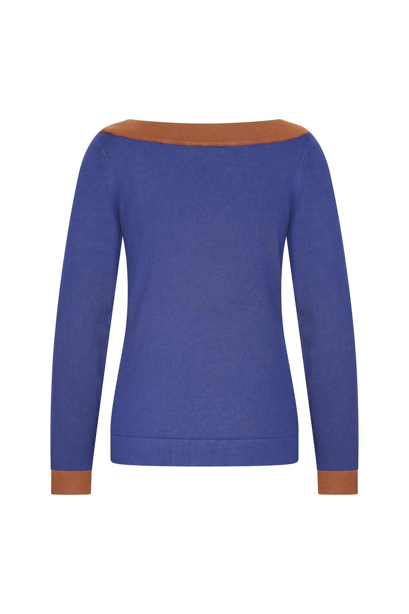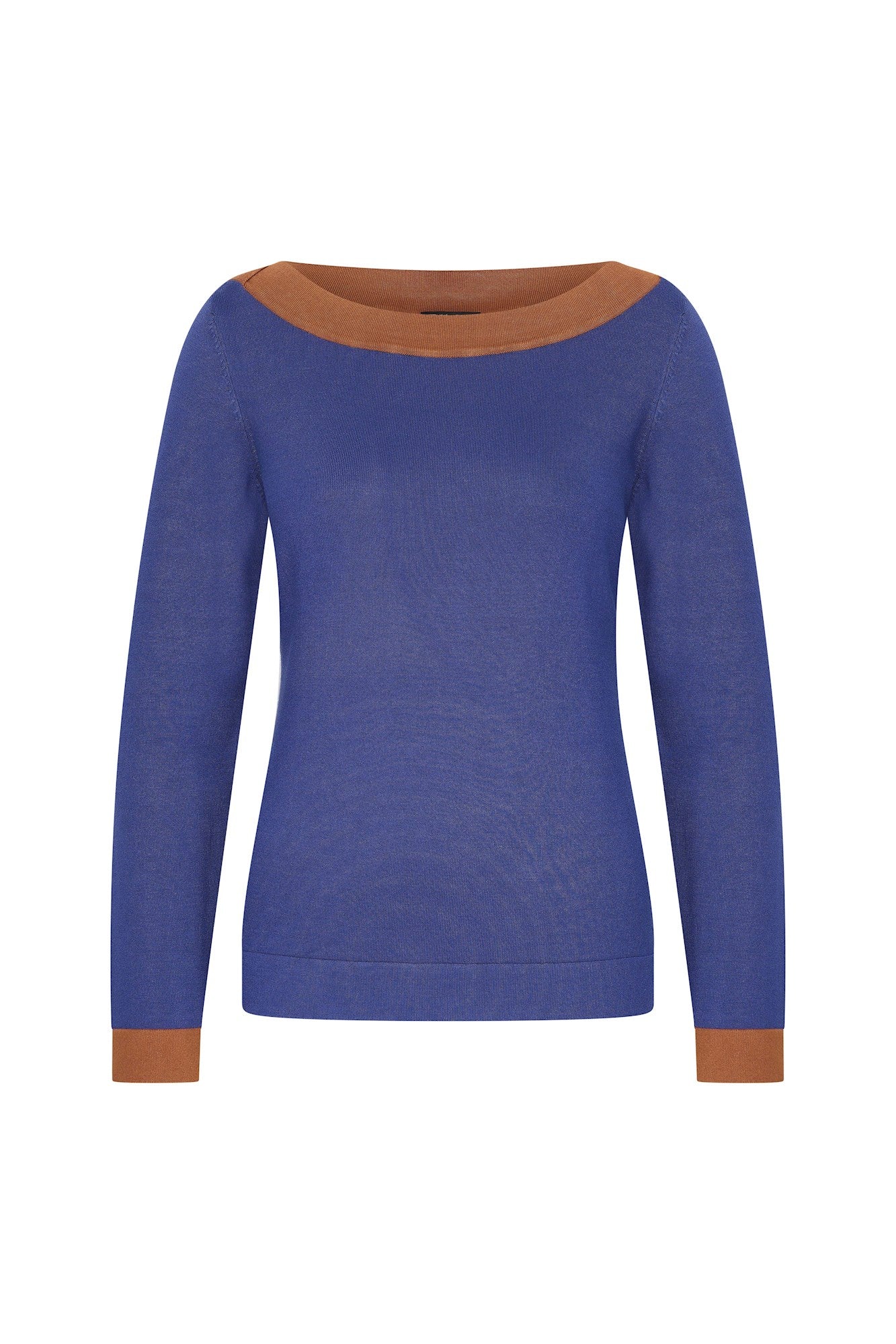 Un top ajusté en viscose de bambou, à encolure bateau double maille et manches longues. Ce top présente des finitions contrastées à l'encolure et aux manches et se décline dans une variété de magnifiques teintes automnales.