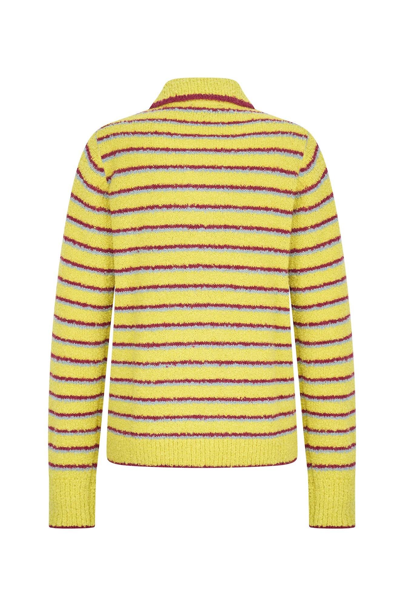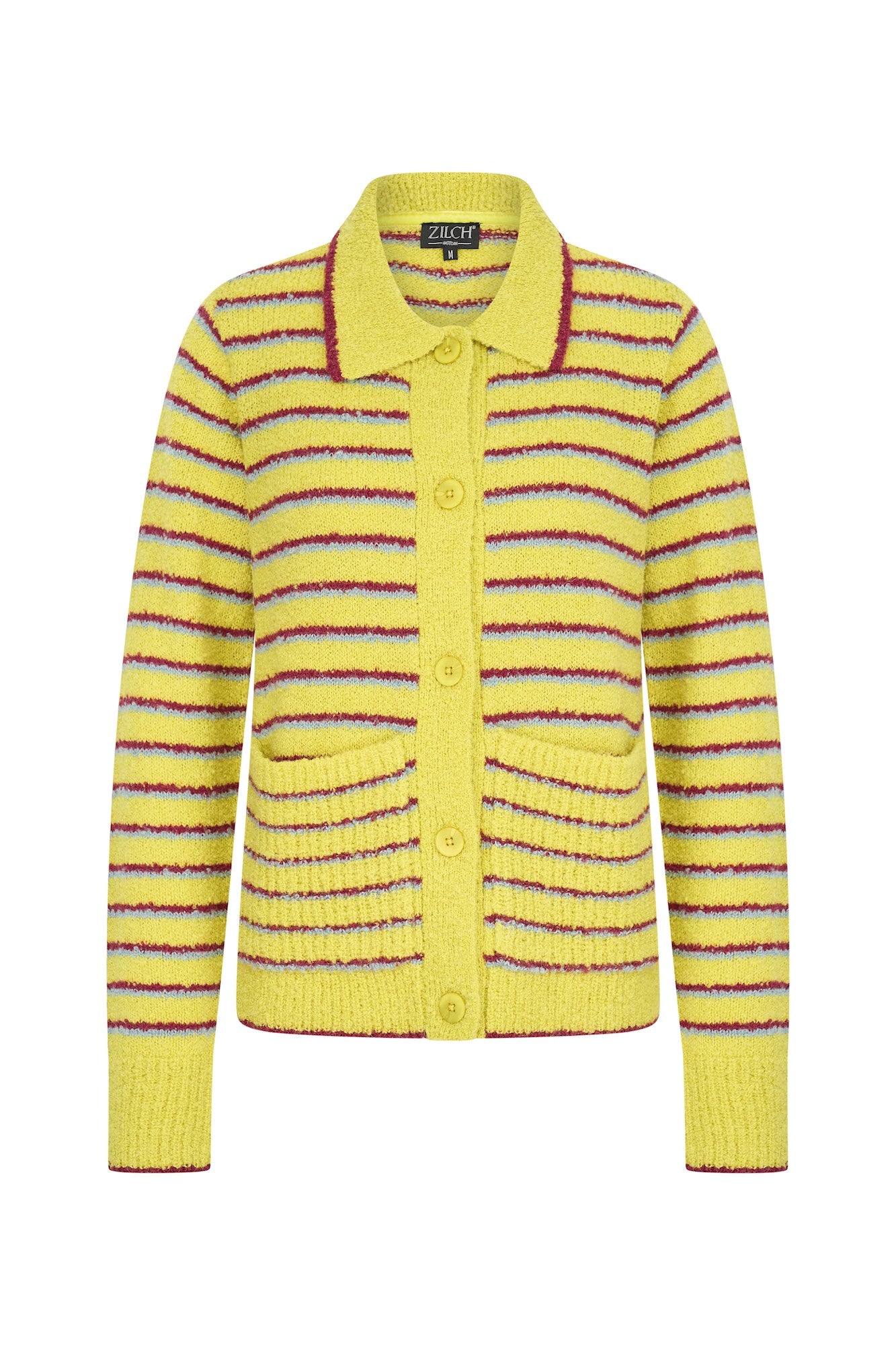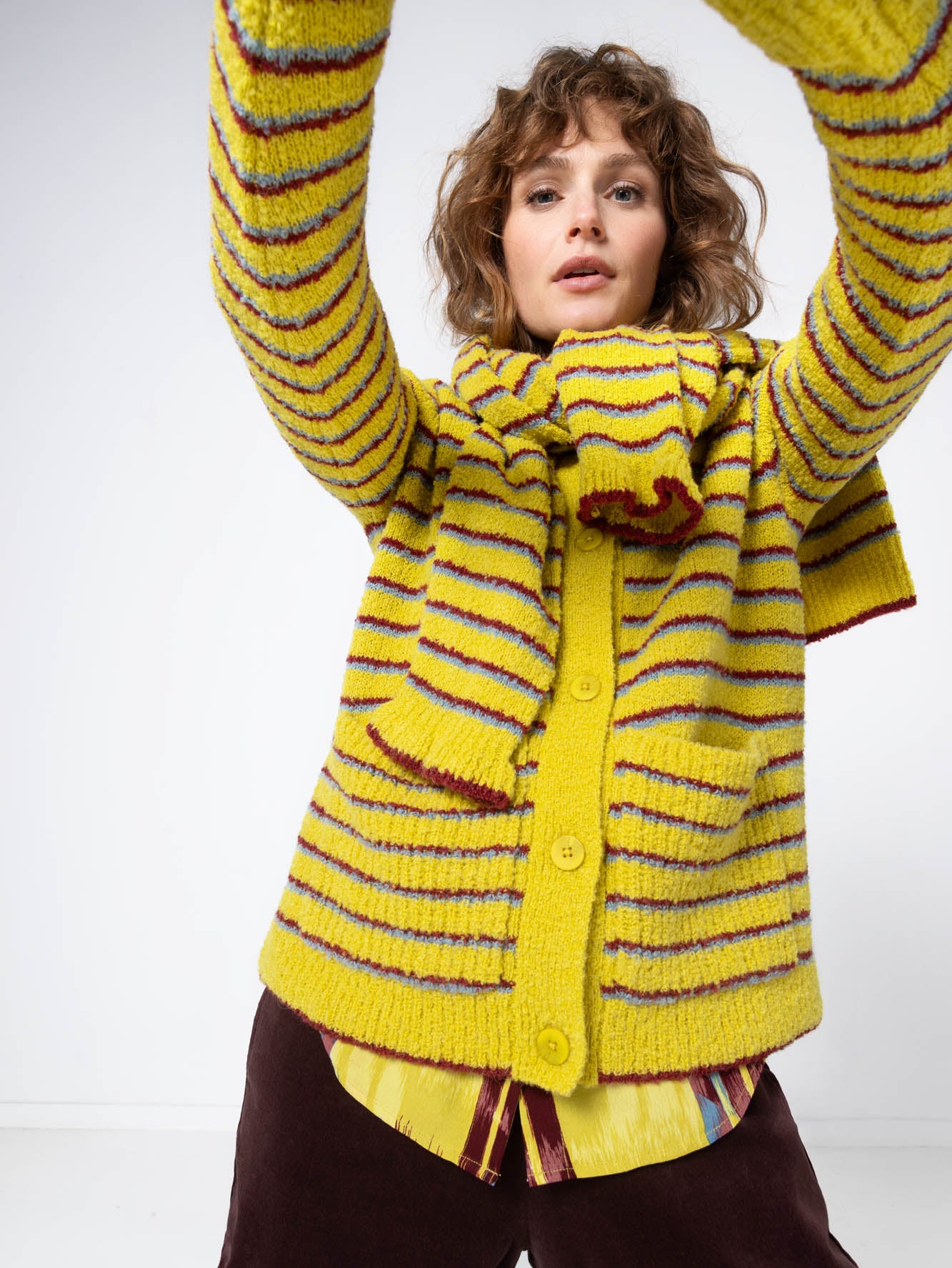 Ce cardigan doux en bouclé, confectionné dans un mélange chaud de laine et d'alpaga, possède un col, des poches et des poignets côtelés. Portez ce cardigan rayé sur un chemisier ou un top pour un look hivernal à la fois chaud et élégant.