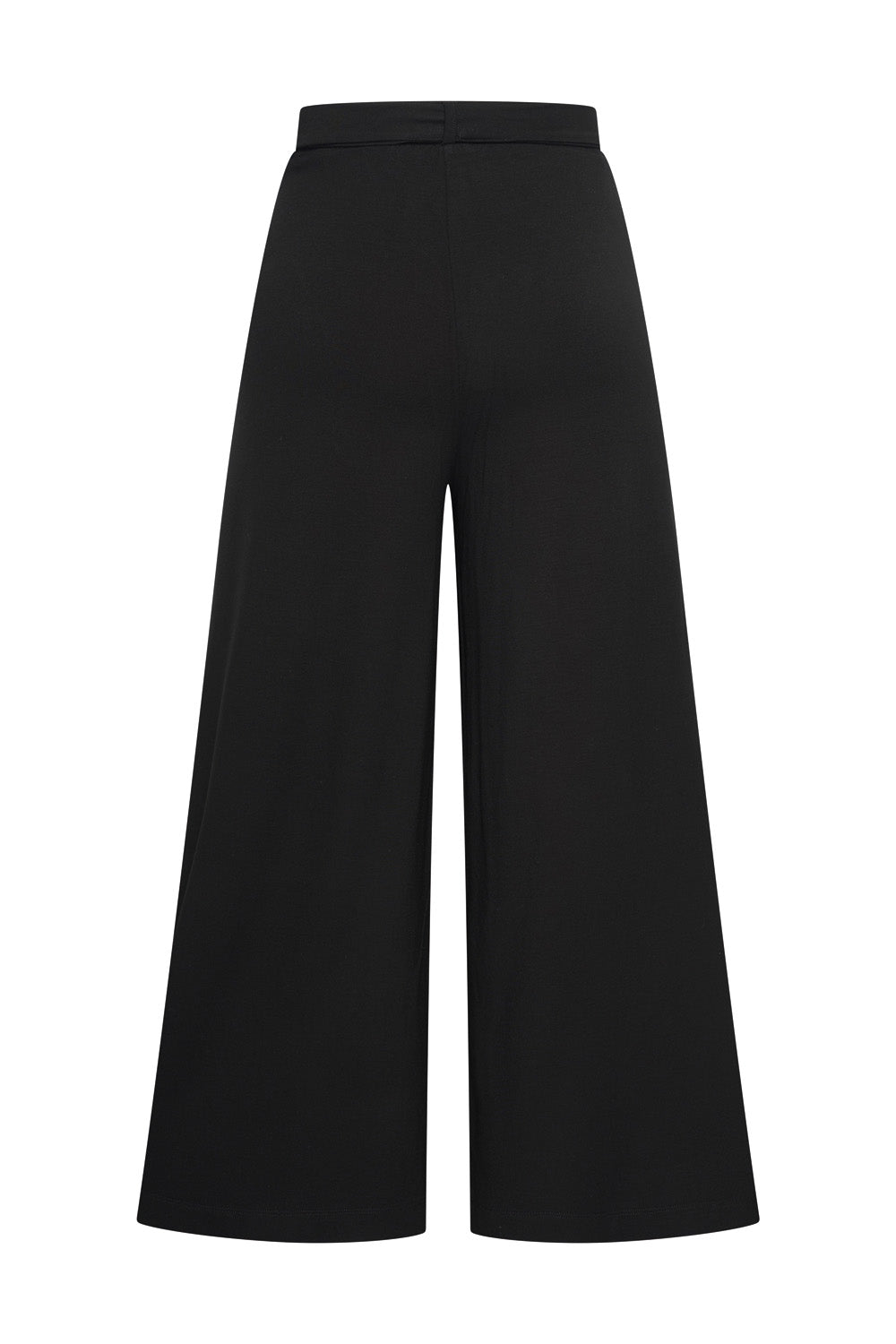 Wijdvallende broek met brede band en ceintuur. De pijpen van deze zomerse jersey broek van ecovero viscose vallen tot op de enkel. </p>