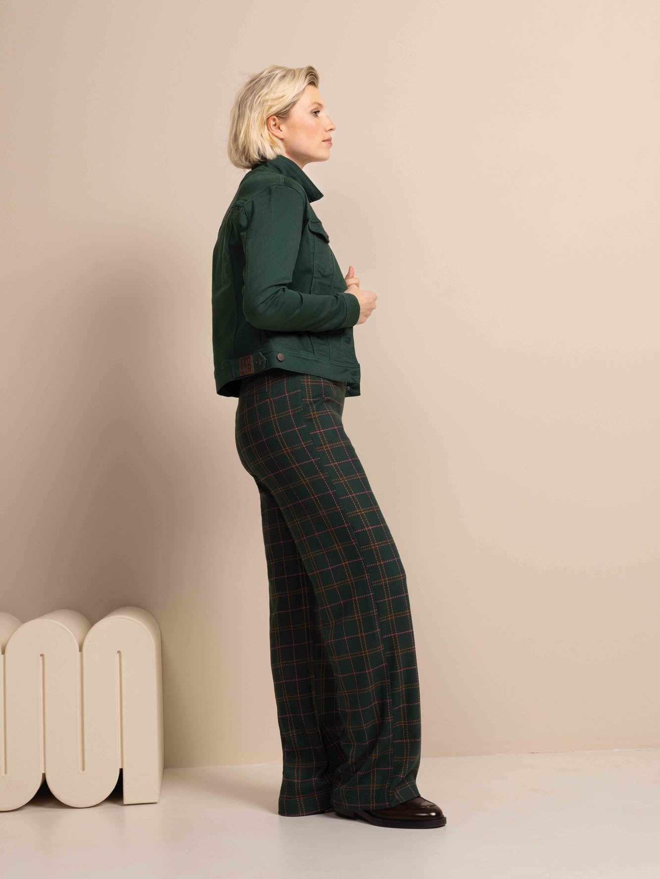 Pantalon fluide à taille mi-haute et jambes larges, orné d'un élégant motif à carreaux. Ce pantalon à la coupe trapèze est doté de poches latérales et se décline en trois coloris qui s'harmonisent parfaitement avec les teintes de la collection Zilch. Il existe en deux longueurs : R (standard) et S (courte).