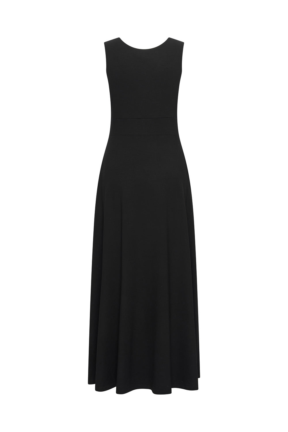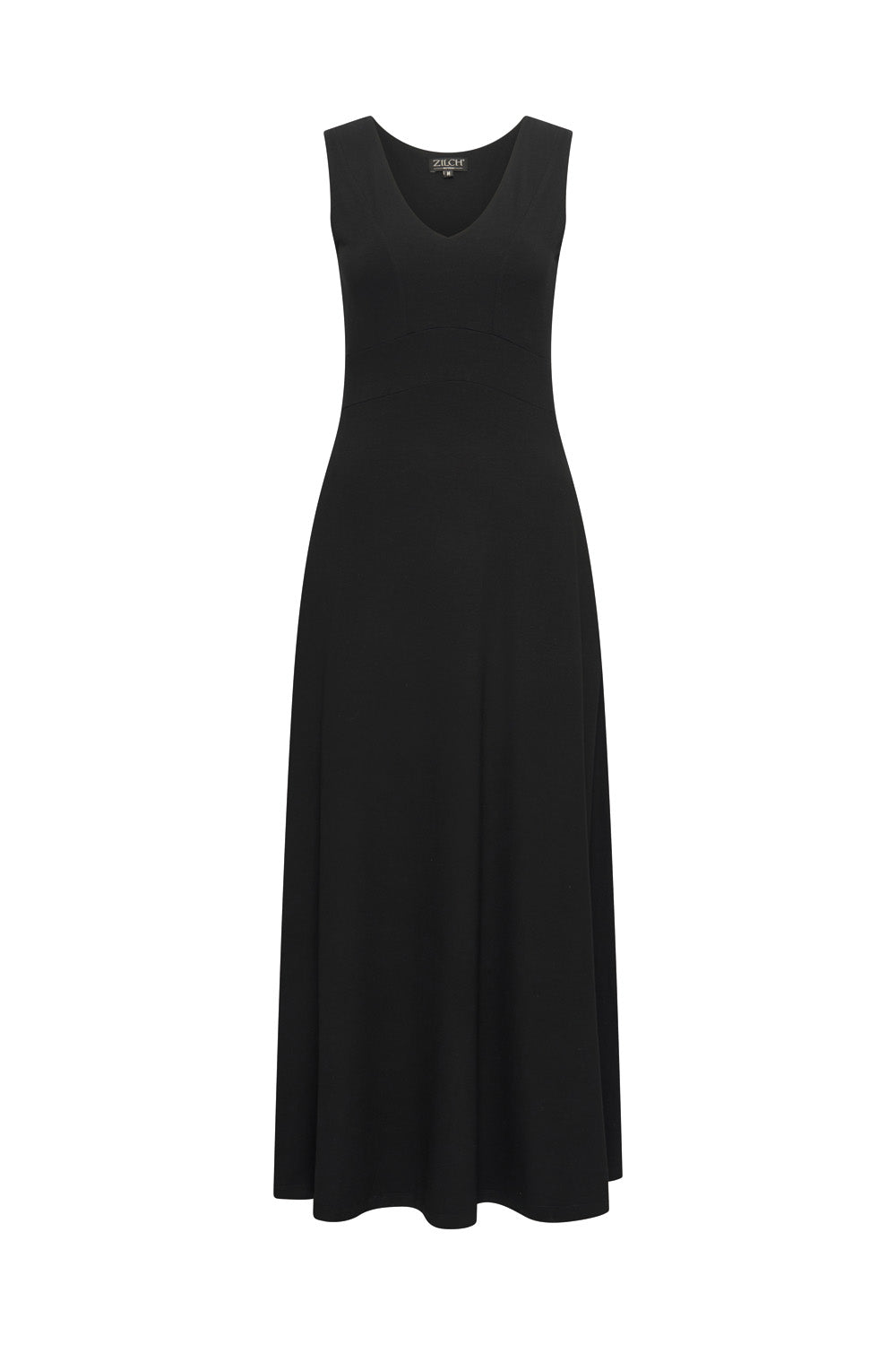Robe longue en viscose EcoVero douce et fluide. Cette robe à bretelles et col en V possède un corsage ajusté qui s'évase vers l'ourlet pour une silhouette trapèze subtile. Choisissez entre un noir élégant et un bleu éclatant.