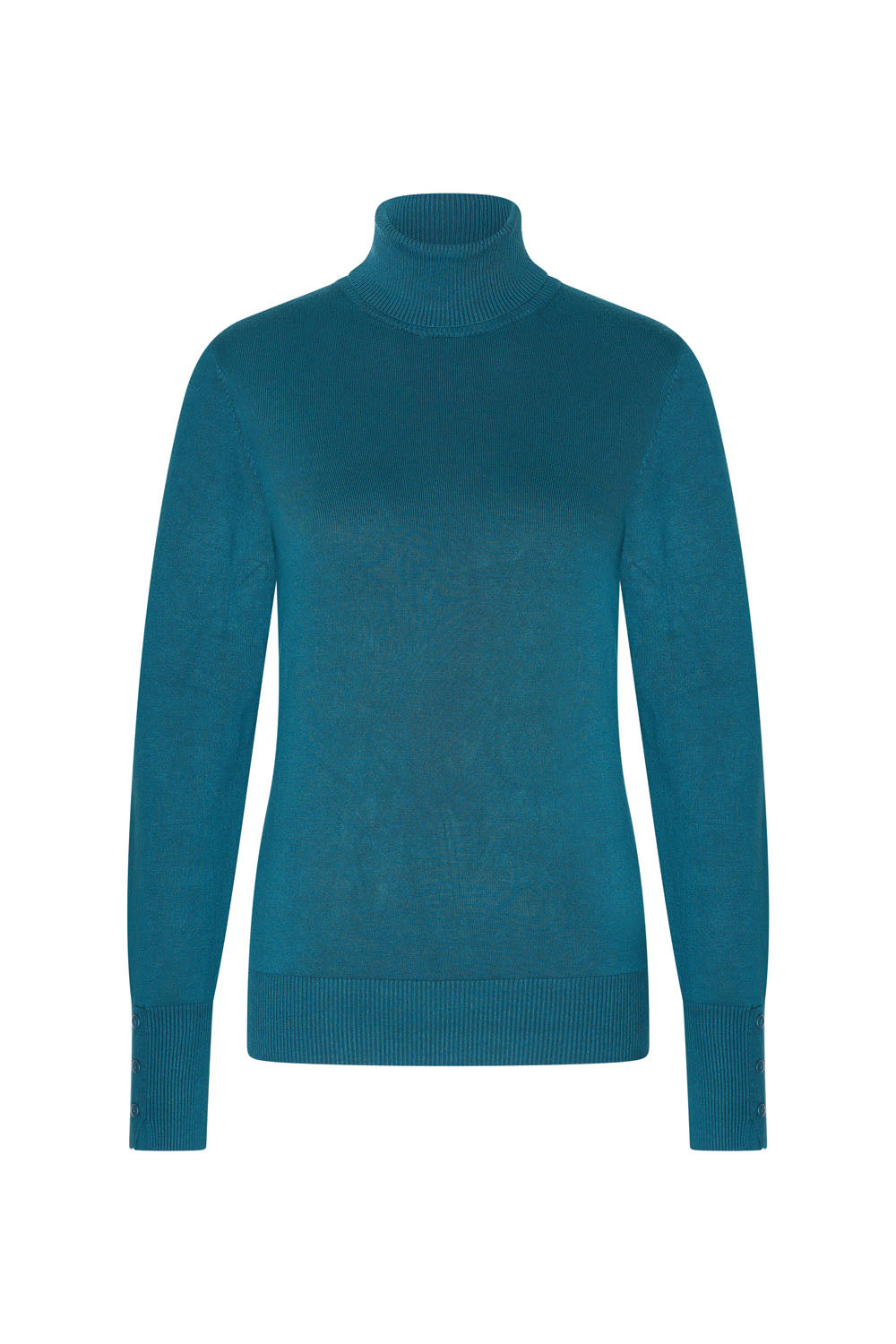 Ce pull à col roulé côtelé à manches longues est confectionné dans une viscose de bambou d'une douceur exceptionnelle. Ses poignets légèrement plus longs sont ornés de trois boutons décoratifs. Idéal comme couche supplémentaire en hiver, il se marie aussi parfaitement avec un chemisier ample pour un look élégant.