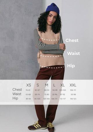 Mesurez toujours votre corps, car chaque morphologie est unique et la coupe peut varier. Les tissus jersey et stretch sont plus extensibles, tandis que les vêtements tissés peuvent être portés un peu plus amples pour éviter les déchirures.