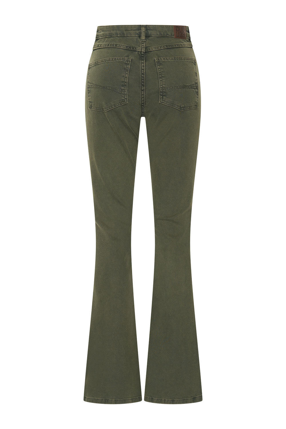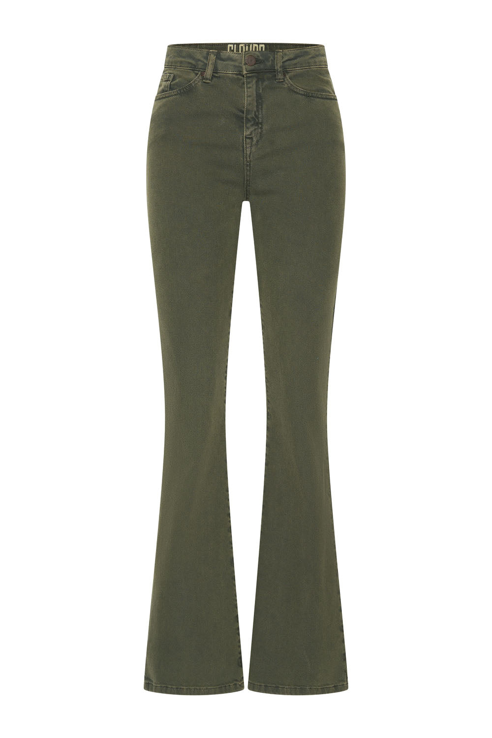 Pantalon élégant en denim coloré à jambes évasées, confectionné en coton biologique souple et doux dans deux magnifiques coloris automnaux. Ce pantalon à taille mi-haute épouse parfaitement la taille et les hanches et possède cinq poches.