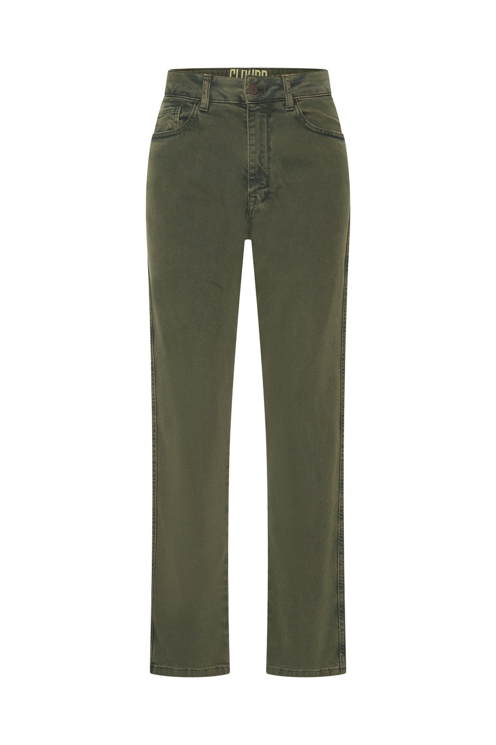 Jean mom tendance, légèrement raccourci, taille haute, coloré, coupe droite et longueur cheville. Ce jean court se ferme par une fermeture éclair et un bouton et possède cinq poches.