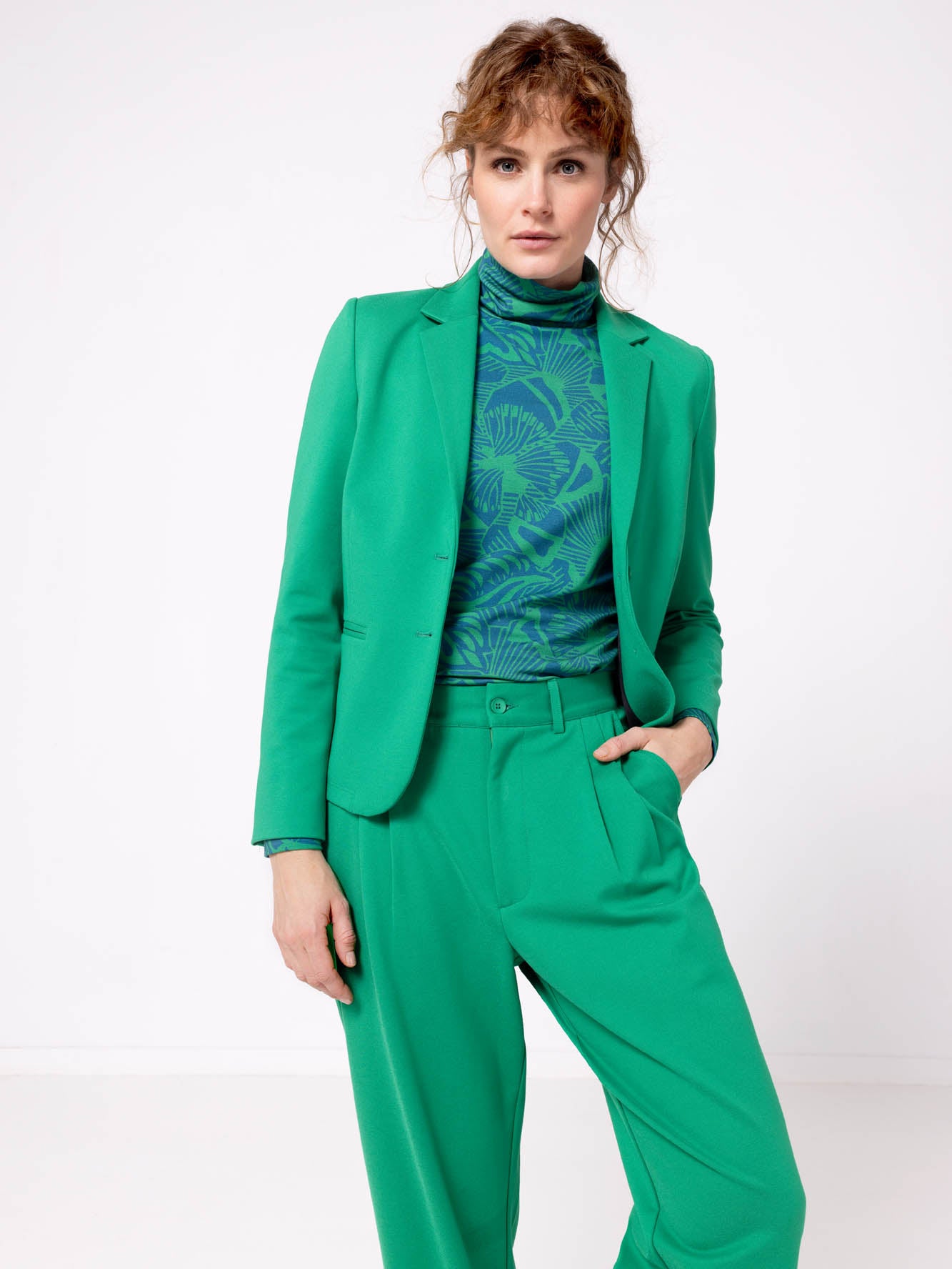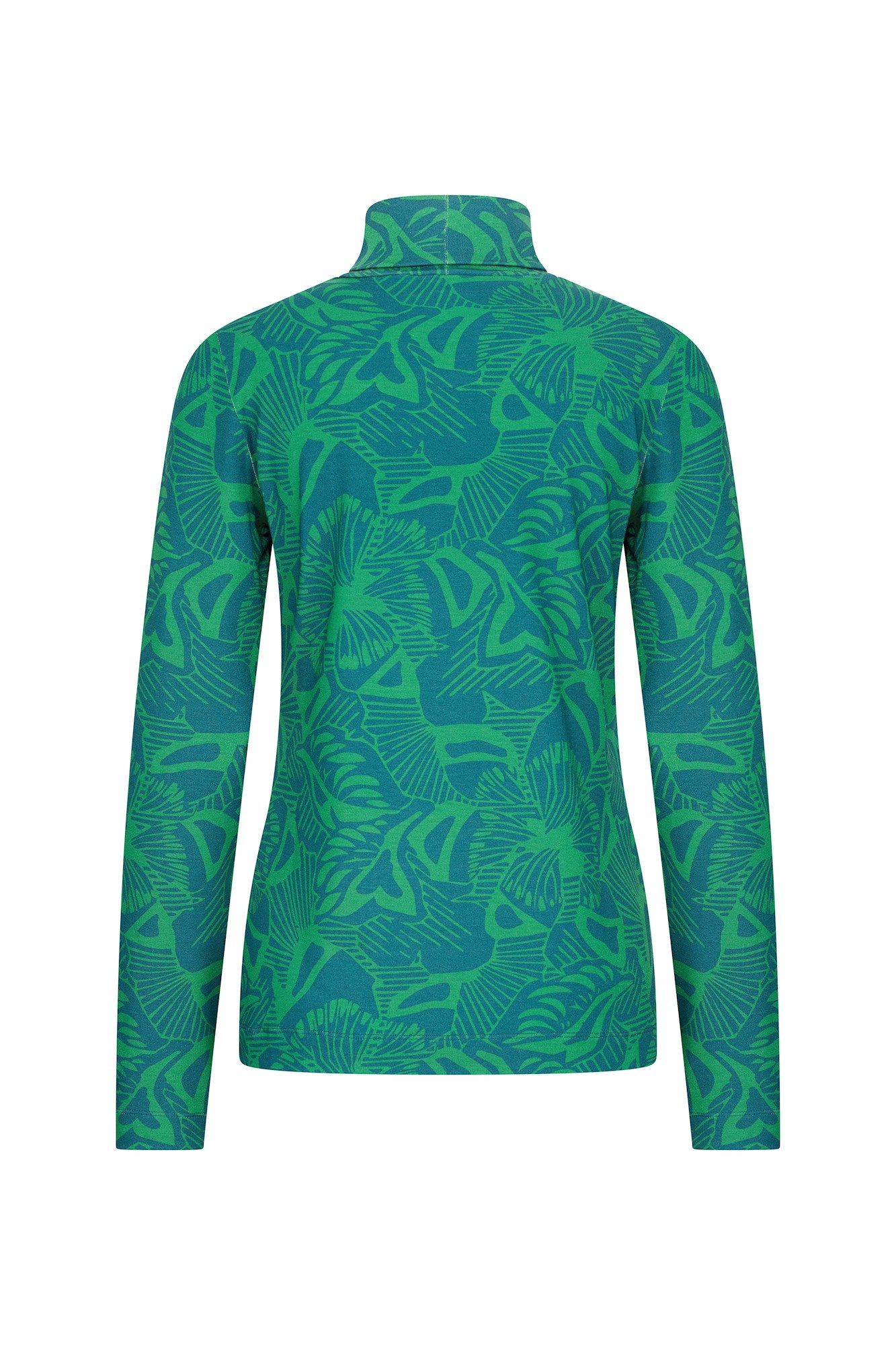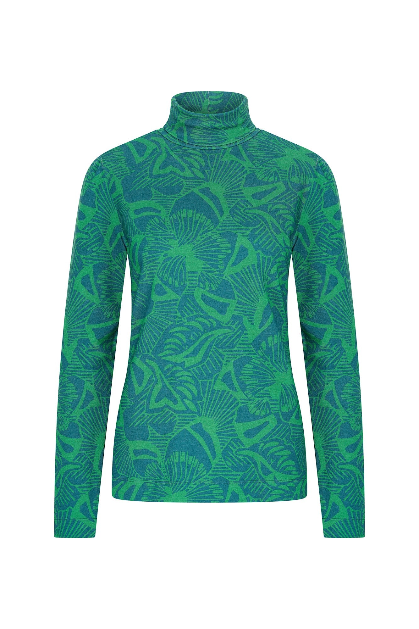 Un top fluide et ajusté en jersey à col roulé, confectionné en viscose Lenzing EcoVero et orné d'un imprimé coloré. Ce top se marie à merveille avec un pantalon ou un jean. Idéal pour les froides journées d'hiver.