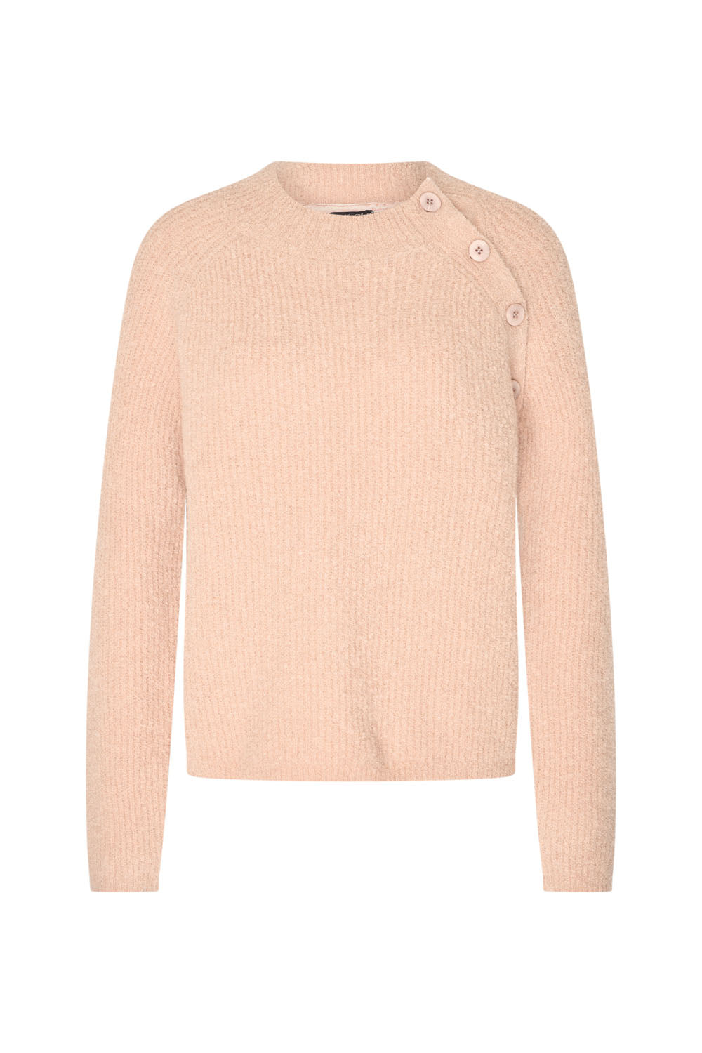 Pull doux et chaud en maille côtelée fine, confectionné dans un mélange de laine tricolore. Ce pull présente un col rond montant avec une patte de boutonnage sur une épaule et de longues manches raglan. Un pull merveilleusement chaud et tendance pour votre garde-robe d'automne et d'hiver.