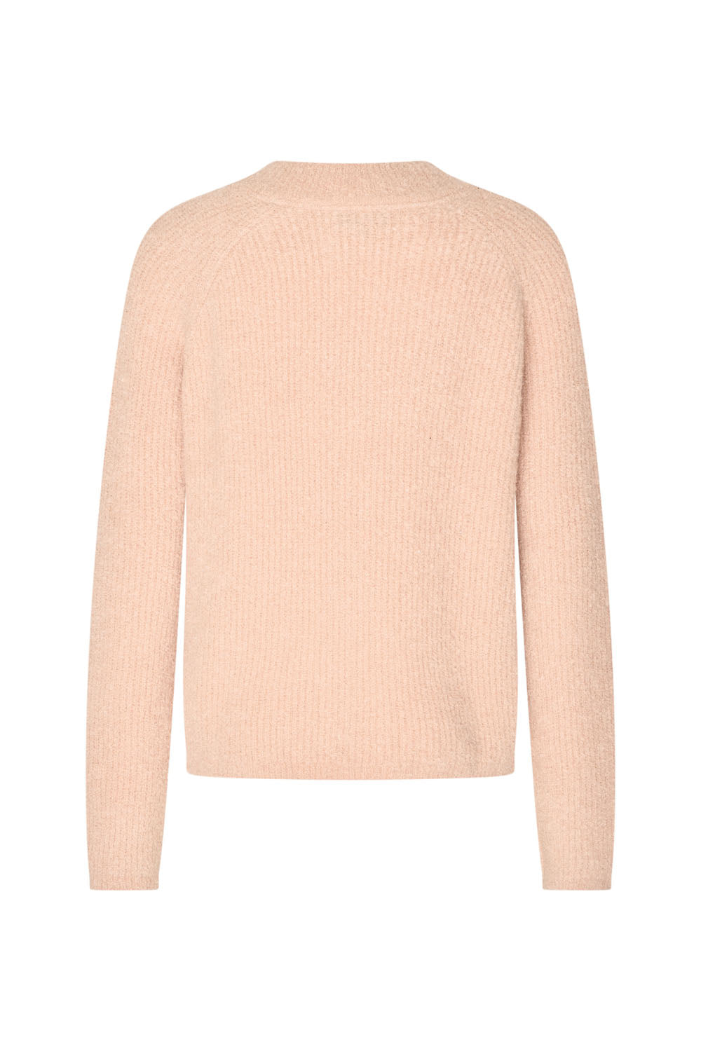 Pull en laine mélangée finement tricotée, avec un col montant et des manches raglan.