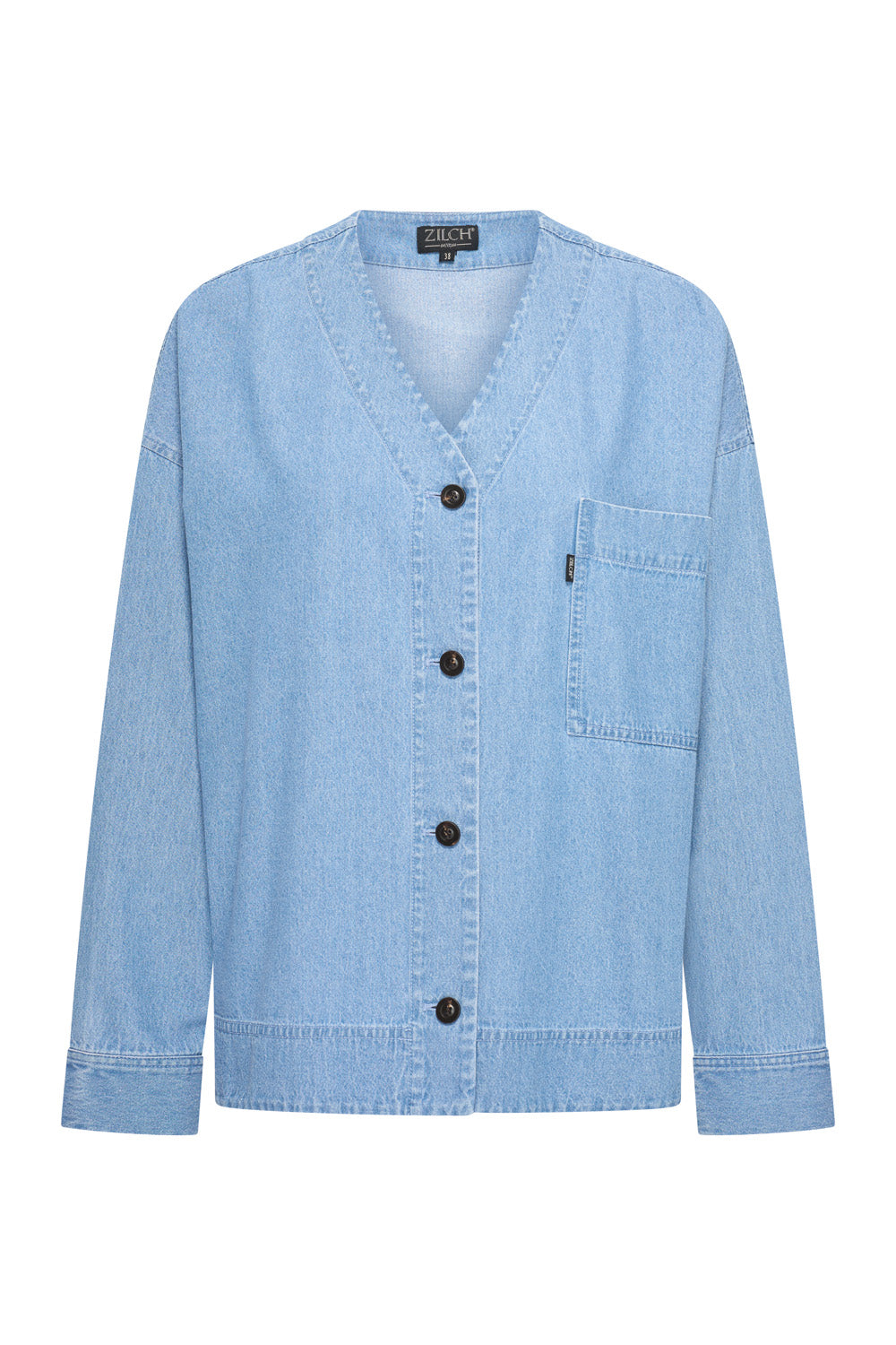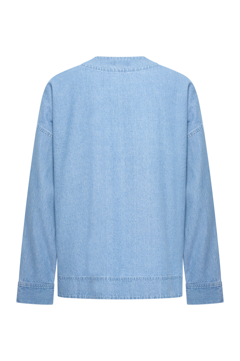 Un chemisier contemporain et ample en chambray de coton doux à l'aspect denim. Ce chemisier présente un large col, une poche poitrine et de petites fentes latérales. Il peut se porter fermé ou ouvert comme une surchemise. Associez-le à l'un des pantalons assortis pour un look estival tendance.