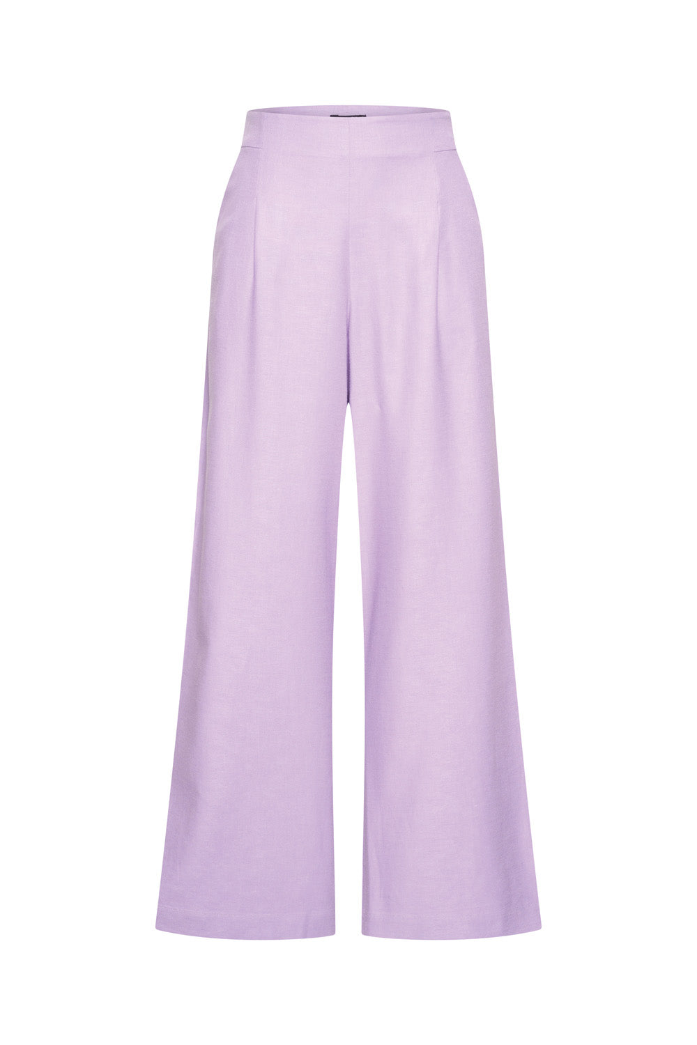 Pantalon large à poches, confectionné dans un mélange doux de viscose et de lin. Ce pantalon présente un pli sur le devant, une taille élastiquée au dos et une touche d'élasthanne pour un confort optimal. À porter avec un blazer assorti pour une tenue estivale élégante.