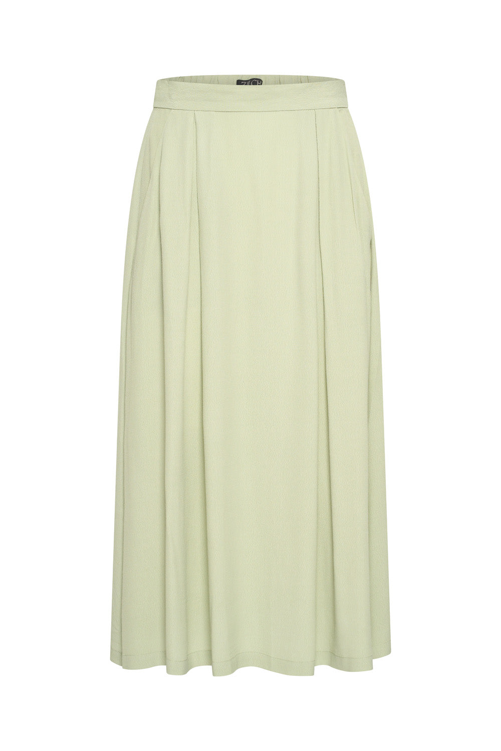 Jupe midi plissée à poches, en crêpe de viscose estivale dans une couleur tendance. La jupe possède une taille élastiquée au dos pour un confort optimal. Une jupe élégante pour votre garde-robe d'été.